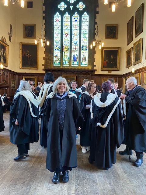 She successfully completed her BA course and was awarded a BA from Oxford University last year. In the picture accompanying this article is Val in full graduation mode.
